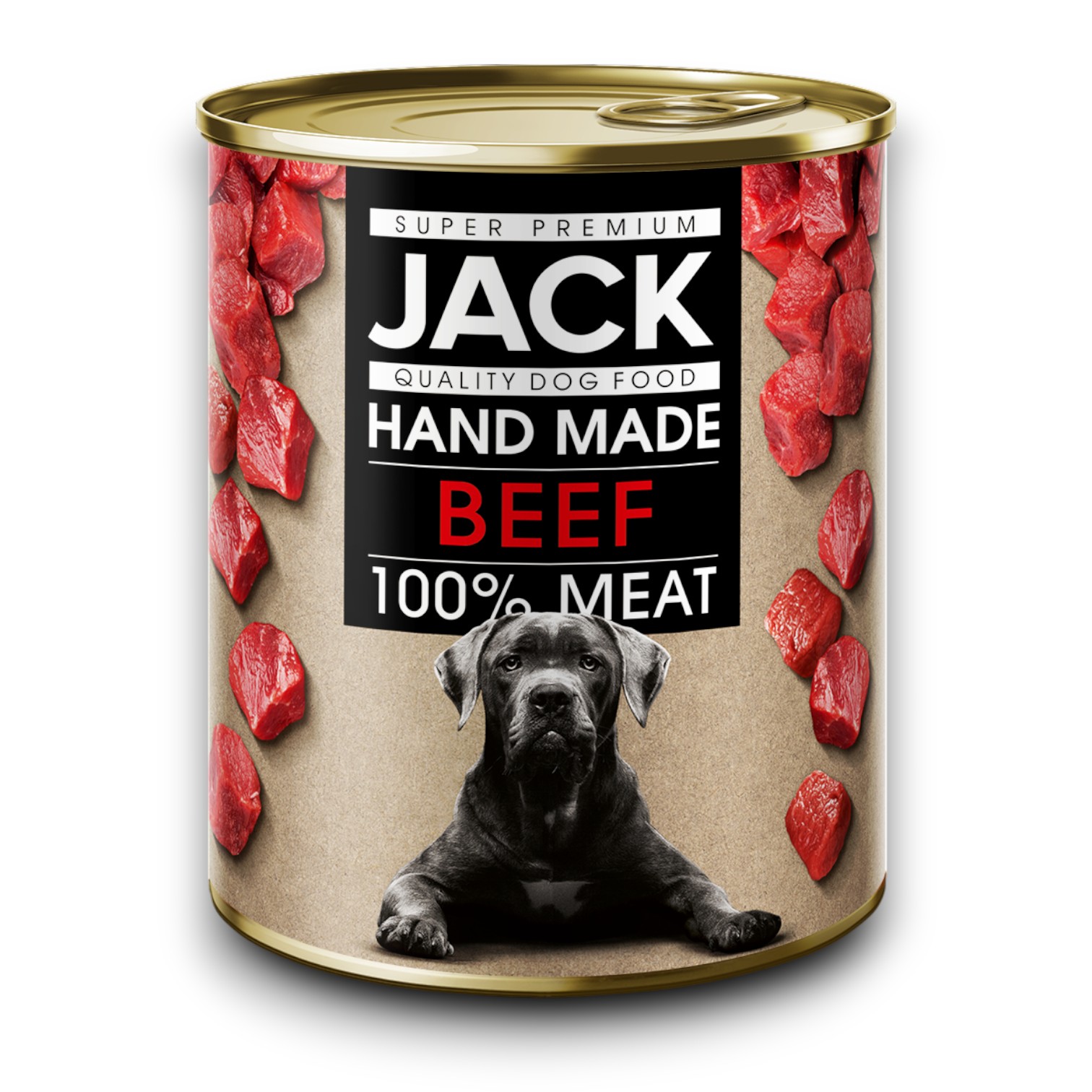 The Jack Super Premium can is the king amoung dog food. It is made from 100% meat. Nothing else. The quality of the meat is Super Premium! It made with a unique technology. Assorted whole beef slices are manually placed in our Jack Premium cans. In the same can, the meat is cooked soft and juicy. As a result, the cartilages are completely disintegrated and not harmful to dogs with more sensitive stomachs. Handmade, complete, easy-to-digest, high-quality dog food rich in minerals and vitamins!