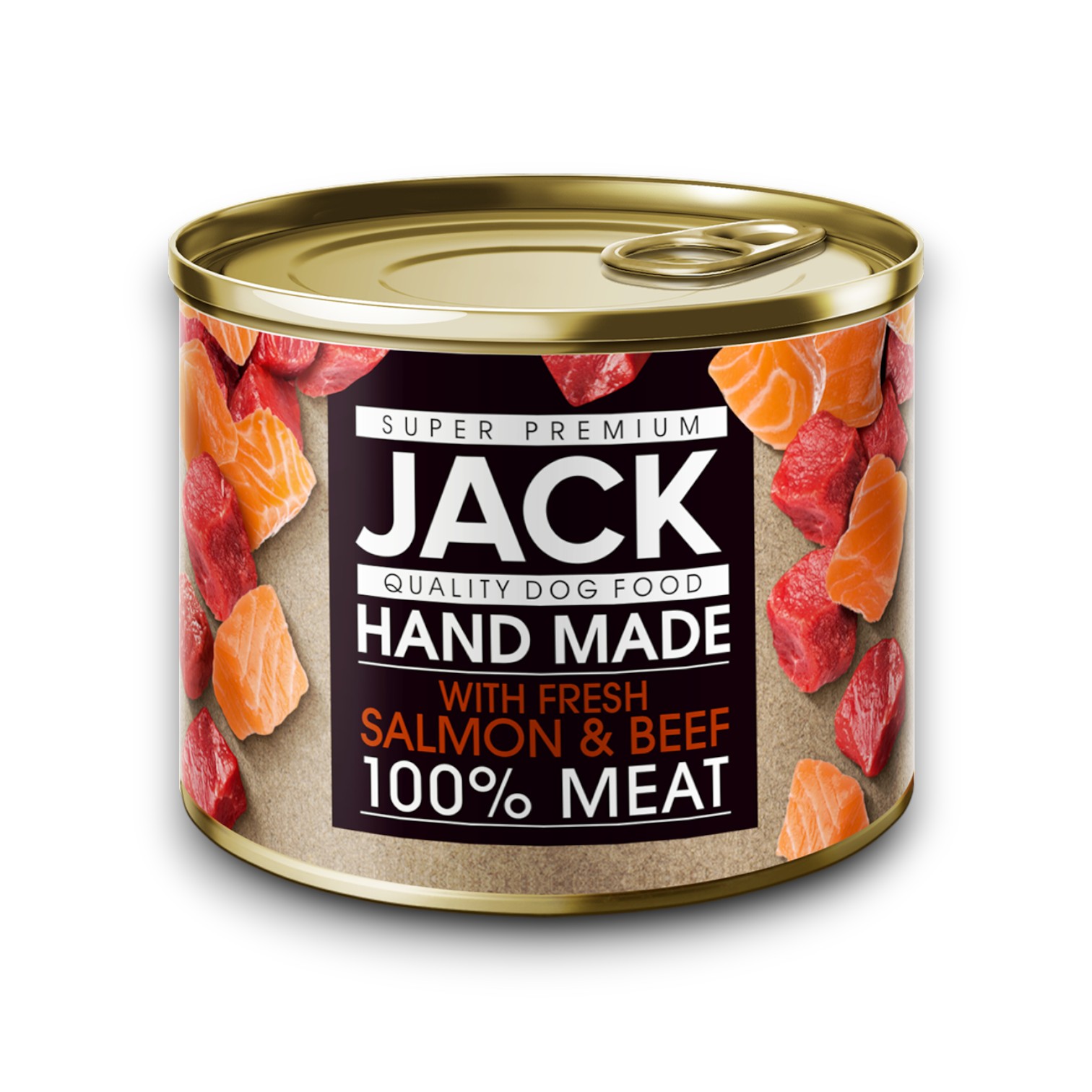 Jack Super Premium Salmon & Beef is a handmade, complete canned food for adult dogs, made from 100% meat. Carefully selected ingredients are slowly cooked in their own juices until tender and succulent—resulting in a truly tasty, easy-to-serve meal that dogs love.