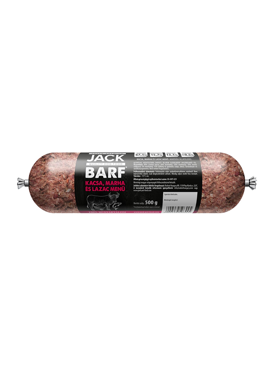 Jack BARF Kacsa-marha-lazac menü 500g